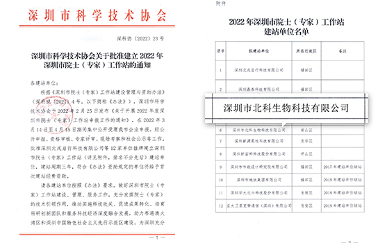2022年6月27日,深圳市科學(xué)技術(shù)協(xié)會(huì)發(fā)布通知,按照《深圳市院士(專(zhuān)家)工作站建設(shè)管理與資助辦法》(深府規(guī)〔2021〕4號(hào))有關(guān)要求,經(jīng)過(guò)公開(kāi)申報(bào)、資格審核和專(zhuān)家評(píng)審、現(xiàn)場(chǎng)考察和社會(huì)公示等工作,同意