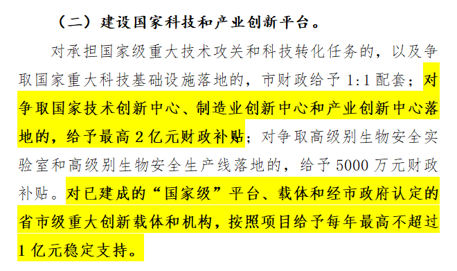 對(duì)承擔(dān)國(guó)家級(jí)重大技術(shù)攻關(guān)和科技轉(zhuǎn)化任務(wù),以及爭(zhēng)取國(guó)家重大科技基礎(chǔ)設(shè)施落地的給予財(cái)政補(bǔ)貼。