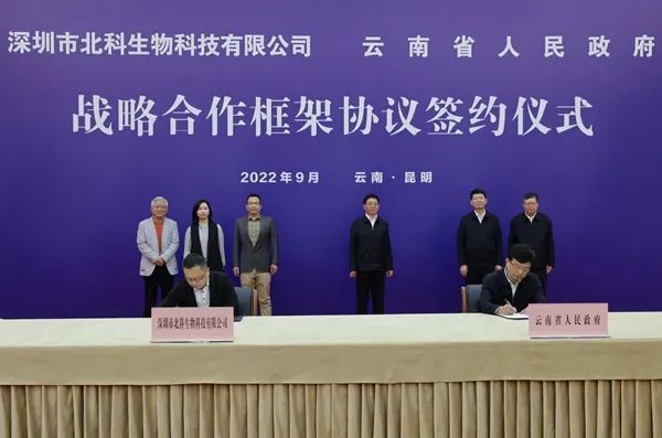 王予波與胡雋源共同見證云南省政府與北科生物簽署戰(zhàn)略合作框架協(xié)議,以及云南省科技廳與北科生物、曲靖市政府簽署合作協(xié)議。楊斌、孫燦參加活動(dòng)。